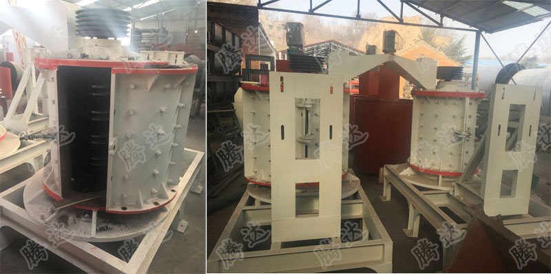 物料由機器上部垂直落入高速旋轉的葉輪內,在高速離心力的作用下,與另一部分以傘狀形式分流在葉輪四周的物料產生高速撞擊與粉碎,物料在互相撞擊后,又會在葉輪和機殼之間以物料形成渦流多次的互相撞擊、摩擦而粉碎,從下部直通排出,形成閉路多次循環,由篩分設備控制達到所要求的成品粒度。