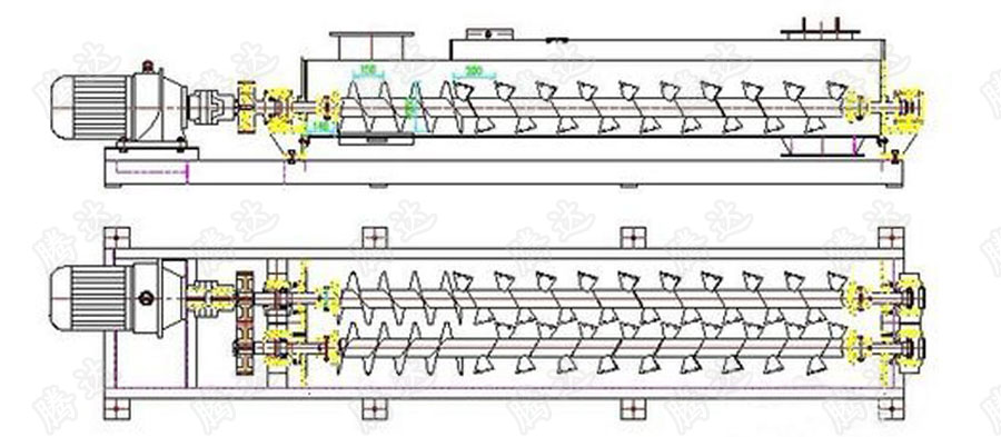 軸攪拌機主要由機殼、螺旋軸總成、驅動裝置、配管、蓋板、鏈罩等部件組成:
